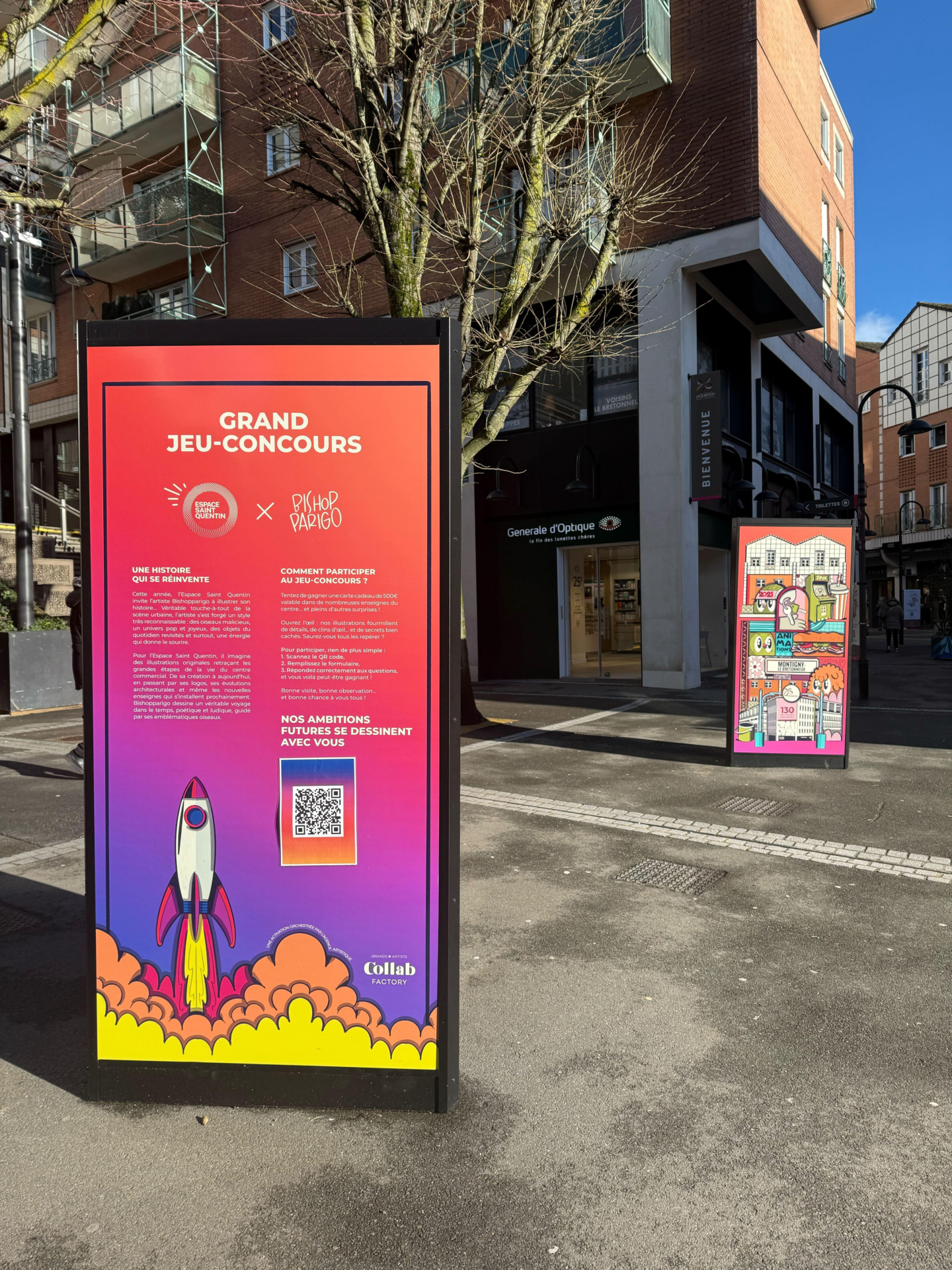 The Espace Saint Quentin shopping center has given artist Bishop Parigo free rein to reimagine its history, from its opening in 1987 to the present day, while previewing the transformations set to take place in 2026.