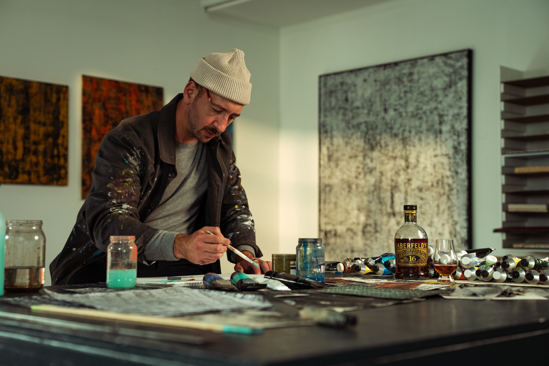 Imaginer un coffret qui reflète la beauté et l’univers propre d’Aberfeldy. L’artiste écossais Steven Cox donne vie à l’âme de l’Écosse en fusionnant l’art et la tradition pour transformer l’histoire d’Aberfeldy en une expérience visuelle et sensorielle. Son amour des paysages écossais et son processus de création artistique, superposant de fines touches de peinture à l’huile invitent à ressentir la profondeur et la subtilité de chaque goutte de whisky.