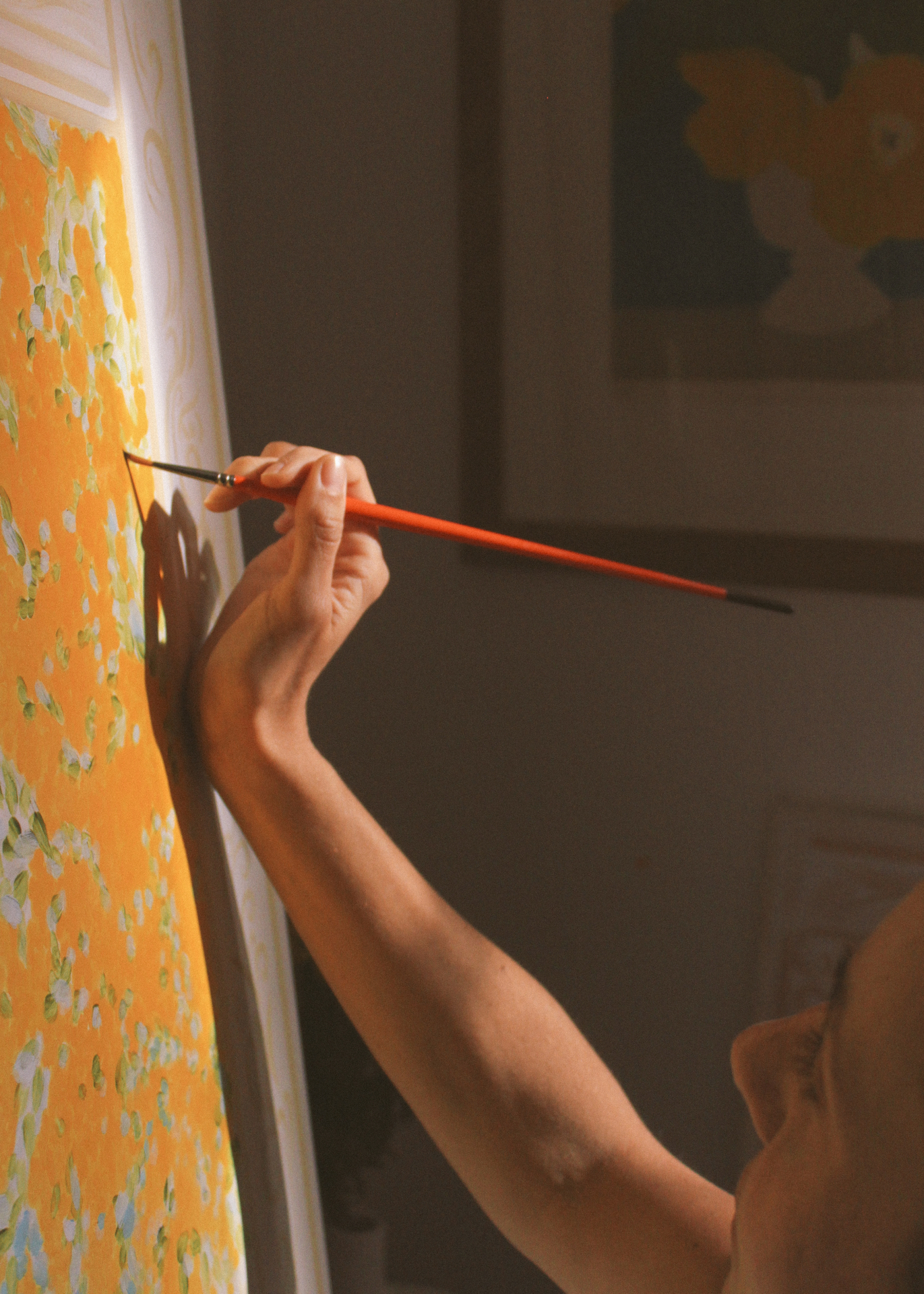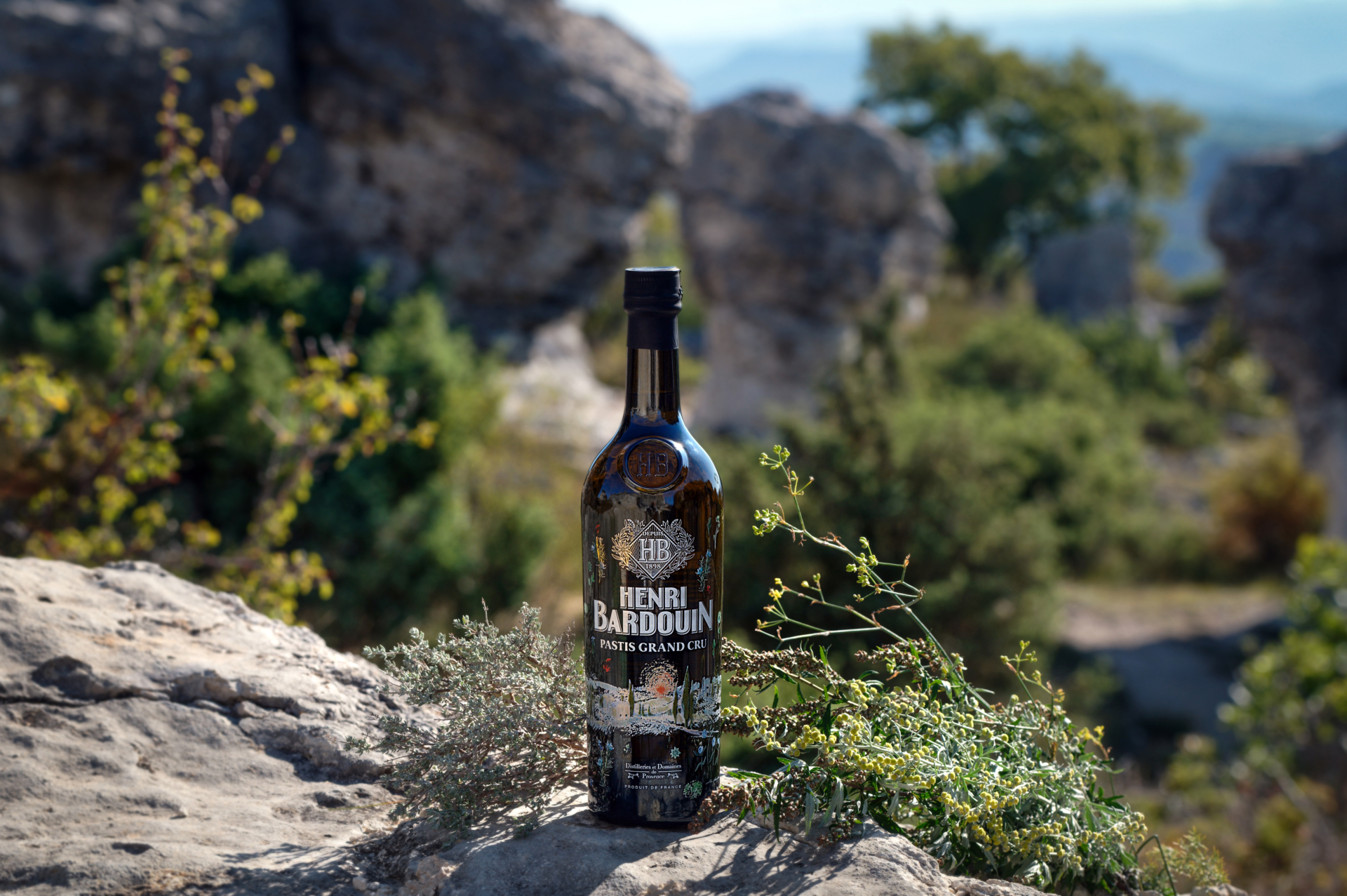 Pour cette édition limitée du Pastis Henri Bardouin, Léa Morichon s’est inspirée des traditions artistiques provençales, comme les tapisseries aux couleurs chaudes et motifs floraux, et les effets de lumière des peintres comme Cézanne. Le paysage de Forcalquier se déploie au crépuscule, entouré d’un herbier évoquant les 65 plantes qui composent ce pastis d’exception, dont la cardamome et l’anis étoilé. Une rencontre entre art, savoir-faire et territoire.
